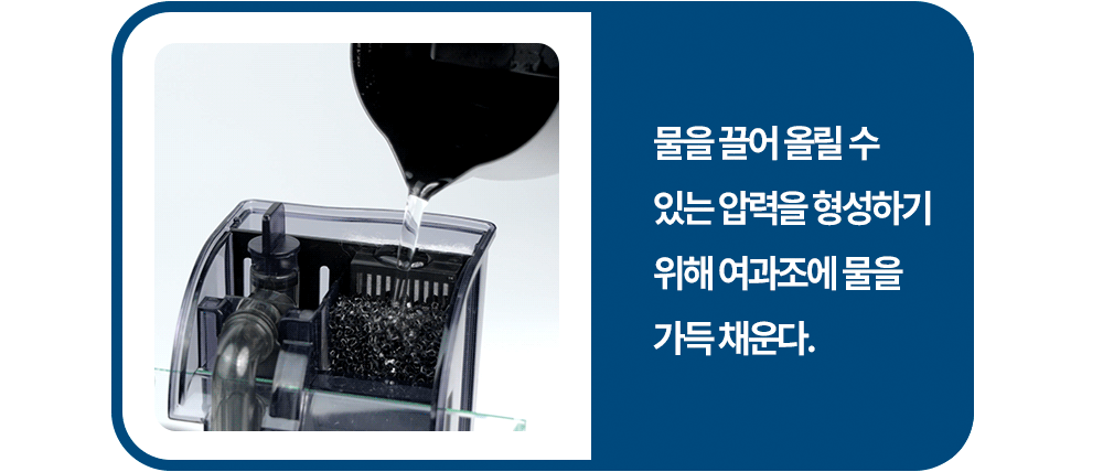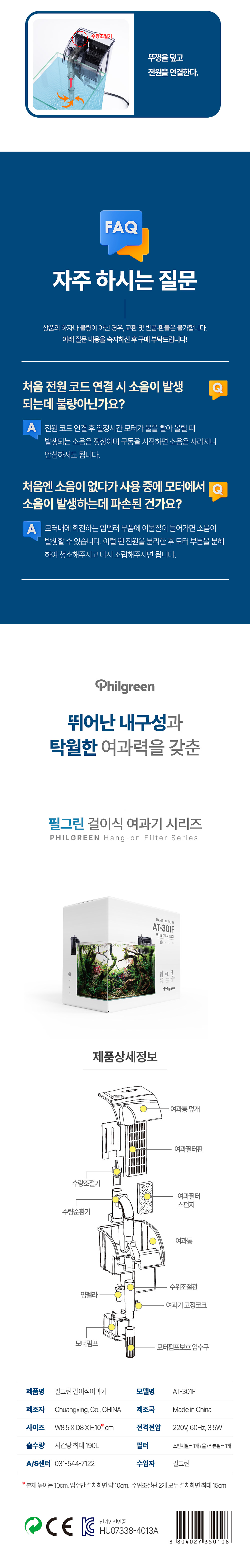 2중 필터속 다량의 활성탄이 포함되어 있어 유기물 흡착능력을 향상시켰으며, 여과필터로 마감되어 박테리아 활성에 도움이 되는 다기능 걸이식 여과기 입니다.